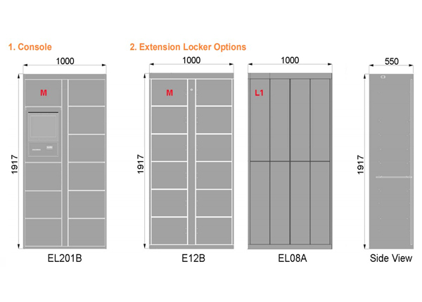 One console can control one or more extension lockers, it can control up to 300 doors.